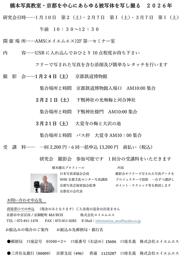 【受講生募集】写真家橋本健次主催 写真教室1月-3月