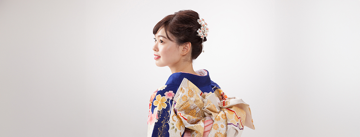 撮影前にお越しいただいてスタジオ内のメイクルームで着付けをさせていただきます。事前予約制です。